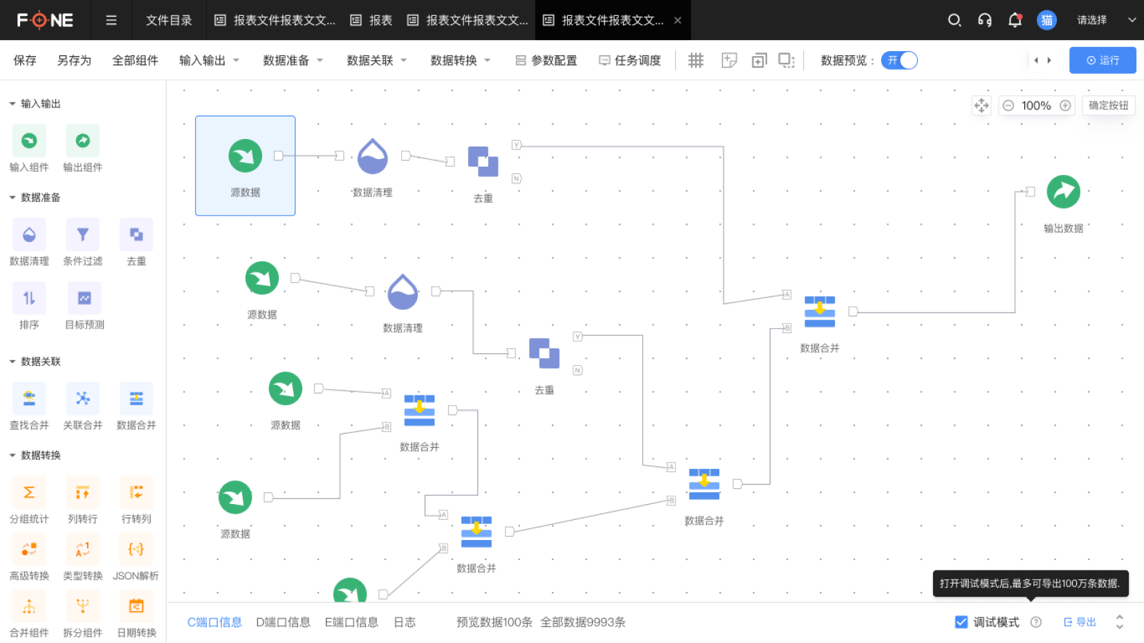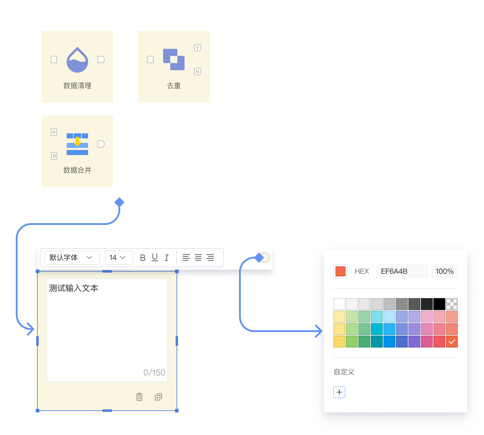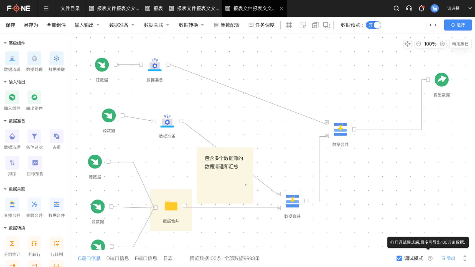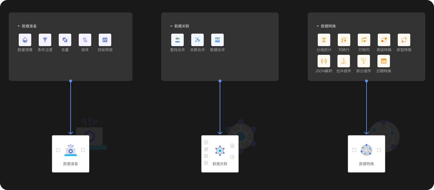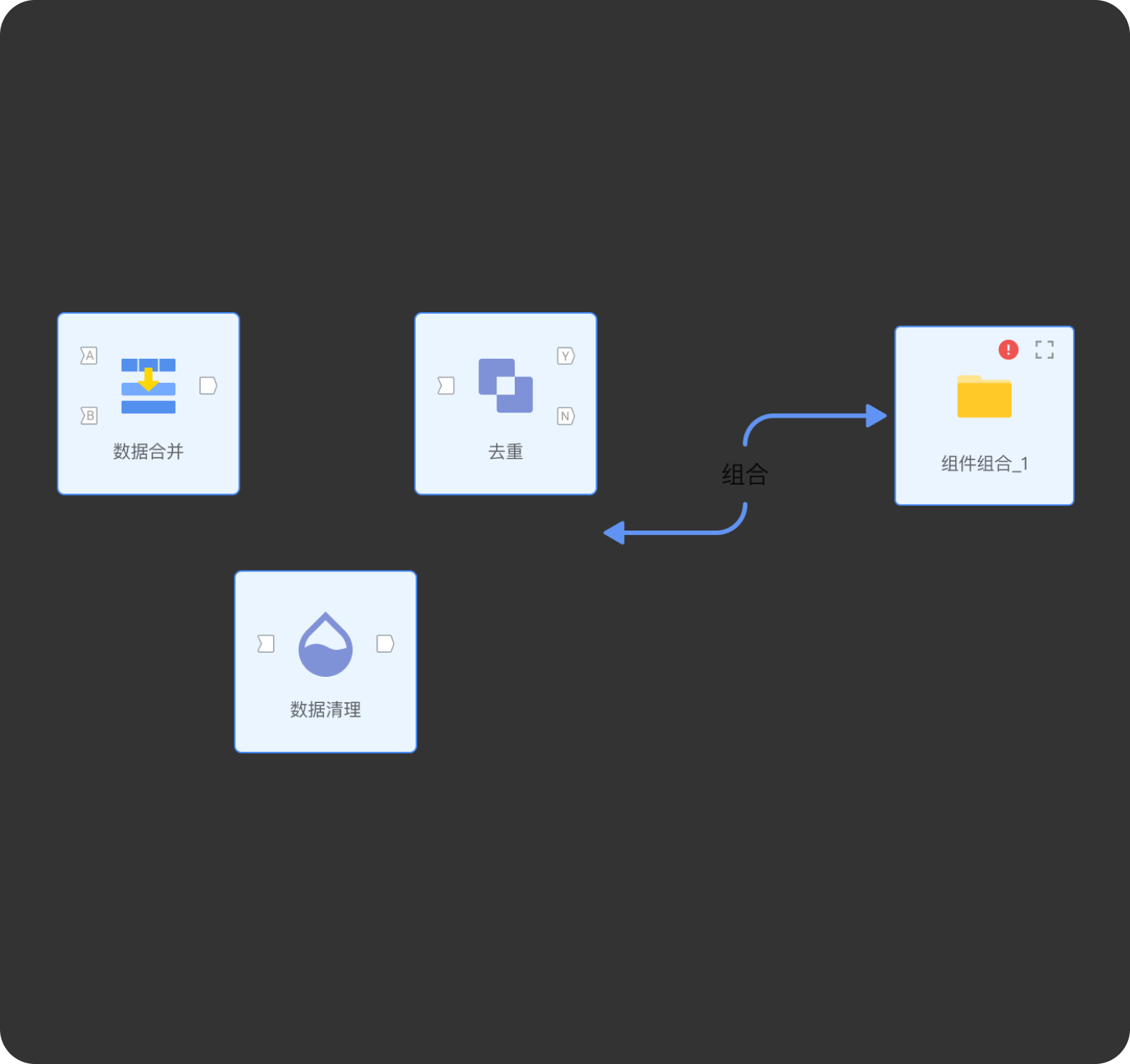 可以简化用户操作,为高级用户提供更自由的设计方案。用户可以在高级组件内,自由的组合每种类型的数据处理逻辑。