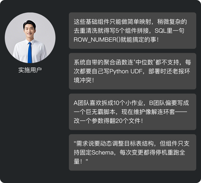 需求上线后,用户反馈备注功能实用,但组件数量仍然较多。查看用户的 ETL 文件后,我发现部分组件需要更灵活的功能。建议用户拆分数据集成文件,以便于管理、维护,并减轻系统负担。
